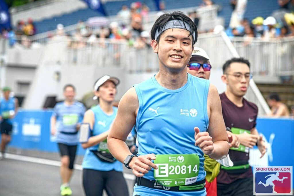 The course went through certain landmarks including Singapore Flyer and the Marina Bay area. Running into the heart of this city state’s CBD was also quite an unforgettable experience. By the time I reached the National Stadium, which was the finish line, the rain had stopped. Everything was clearly marked. Water and ionised water were plenty. At the last KM and at the finish line, my girlfriend came all the way from the hotel to support and I must salute her for that. After the finish line, crowd control was second to none. Runners were made to form straight line without blocking any finishing runners. While that meant we had to walk almost another kilometre after a long run, I could not complain.